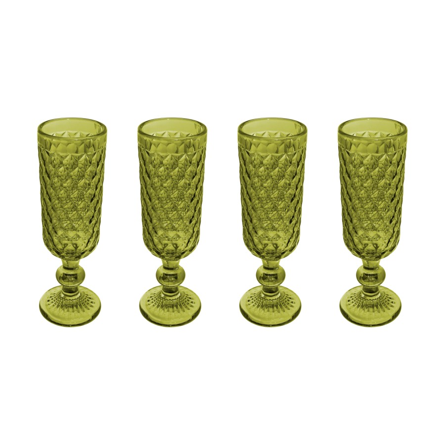 Casa Domani Ποτήρια Σαμπάνιας Τύπου Flute 162ml Caterina Πράσινο- Σετ 4 Τεμαχίων Σε Συσκευασία Δώρου