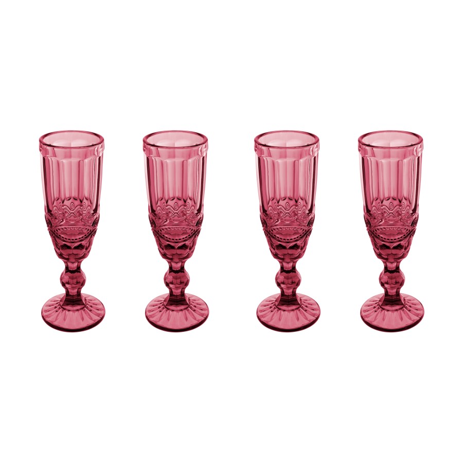 Casa Domani Ποτήρια Σαμπάνιας Τύπου Flute 165ml Gabriella Ροζ- Σετ 4 Τεμαχίων Σε Συσκευασία Δώρου