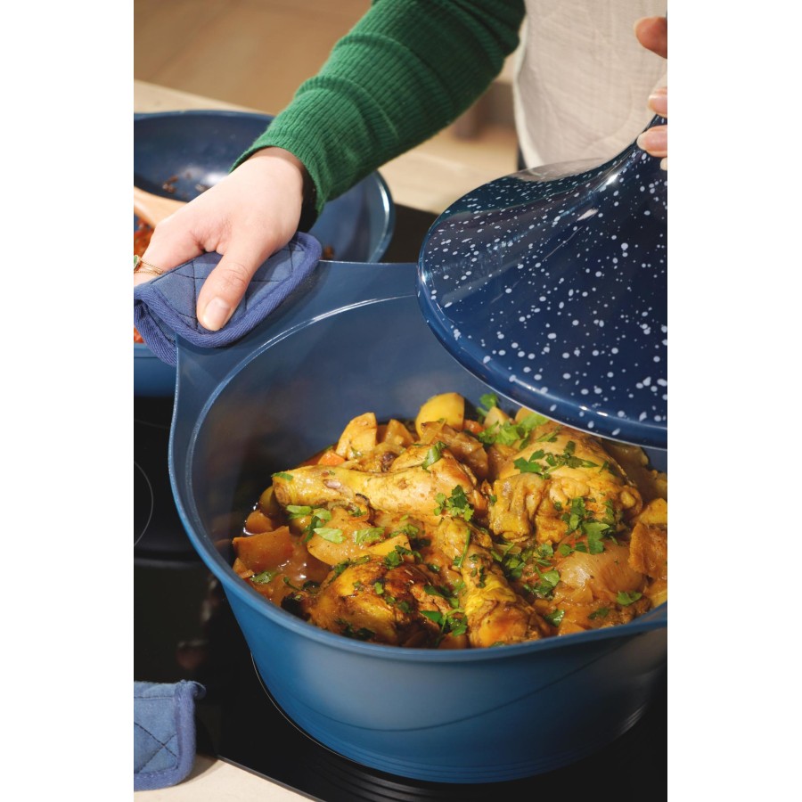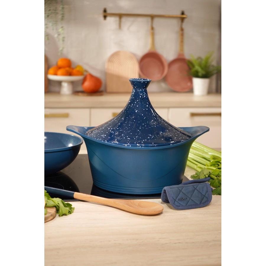 Χάρη στο χαρακτηριστικό του σχήμα, το καπάκι ταζίν ενισχύει τη συμπύκνωση των ατμών, επιτρέποντας ομοιόμορφο, απαλό και αρωματικό μαγείρεμα, ιδανικό για κρέατα, λαχανικά, ψάρια και παραδοσιακές συνταγές.
